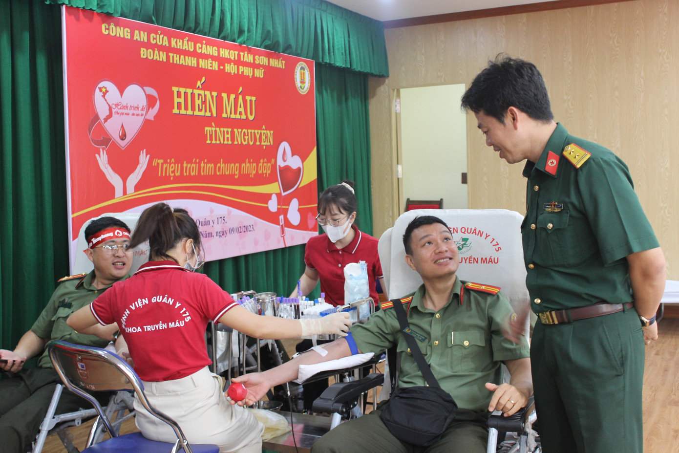 Trung tá Đỗ Văn Hào – Phó Trưởng Công an cửa khẩu Cảng hàng không quốc tế Tân Sơn Nhất cho biết: “Khi nhận được kế hoạch hiến máu tình nguyện 'Chủ nhật Đỏ' thì cấp ủy đã nhiệt tình ủng hộ. Đây là hoạt động tạo thêm động lực cho các cán bộ, chiến sĩ cơ quan trong năm 2023 thực hiện tốt nhiệm vụ. Đồng thời, hoạt động cũng thể hiện tinh thần “sẻ chia” của người chiến sĩ công an. Tôi mong rằng, Đoàn Thanh niên cơ quan sẽ phối hợp làm tốt nhiều các hoạt động như thế này”.