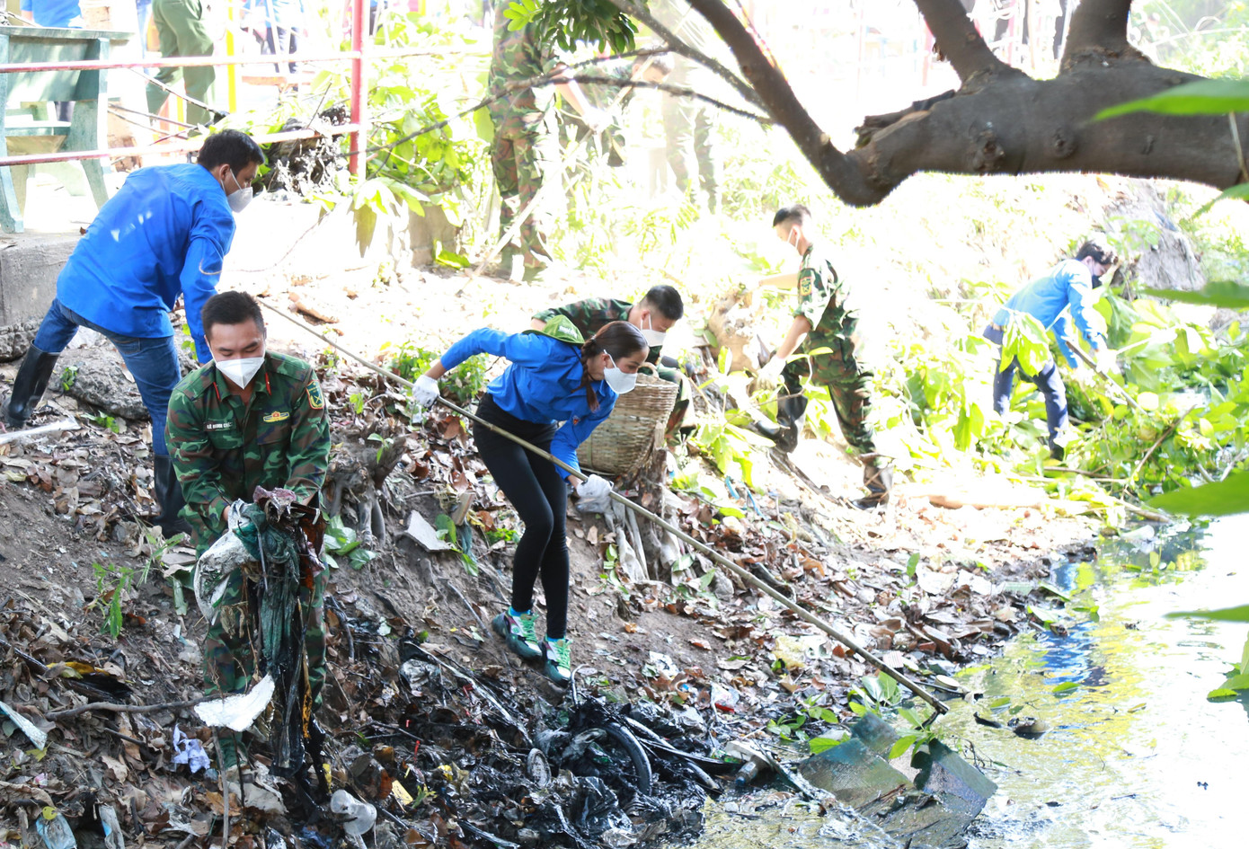 | H'Hen Niê không quản ngại bùn đất cùng các bạn trẻ tham gia dọn sạch đoạn kênh |