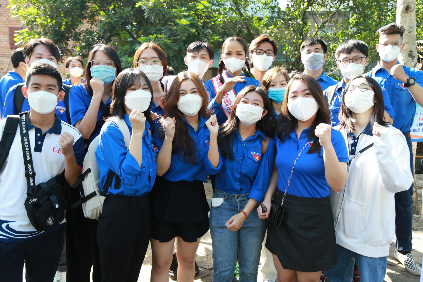 | Nàng hậu xinh đẹp chụp ảnh lưu niệm cùng các bạn đoàn viên thanh niên |