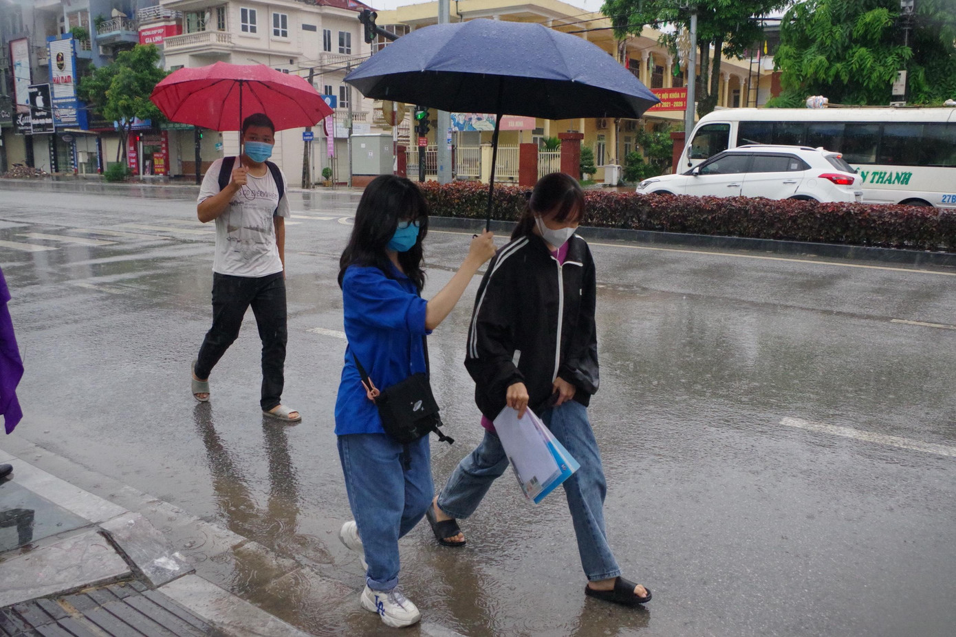 | Trời mưa lớn khiến việc di chuyển gặp nhiều khó khăn. |