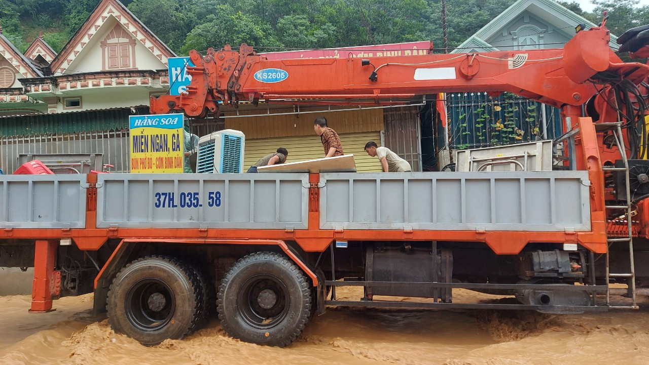 Lực lượng chức năng và người dân huyện Kỳ Sơn sơ tán người và tài sản khỏi khu vực nguy hiểm của lũ, sạt lở.