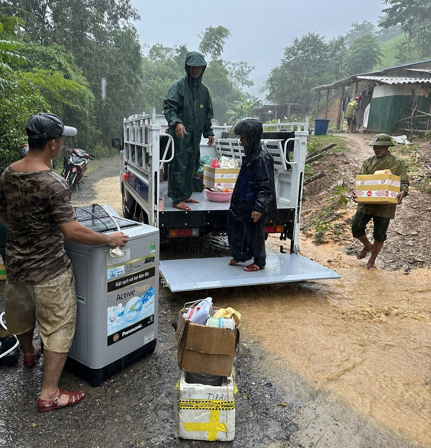 Lực lượng đoàn viên, thanh niên hỗ trợ đưa người lớn tuổi khỏi khu vực nguy cơ bị sạt lở.