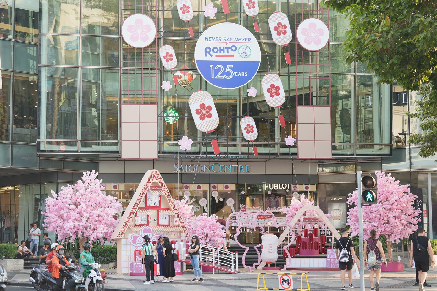 Đặc biệt, tại Saigon Centre là những ngôi làng cổ mang nét kiến trúc gassho-zukuri, hay còn gọi là những ngôi nhà mái tranh, thấp thoáng dưới những tán hoa anh đào, là không gian đẹp để bạn trẻ có cho mình những bức ảnh đẹp.