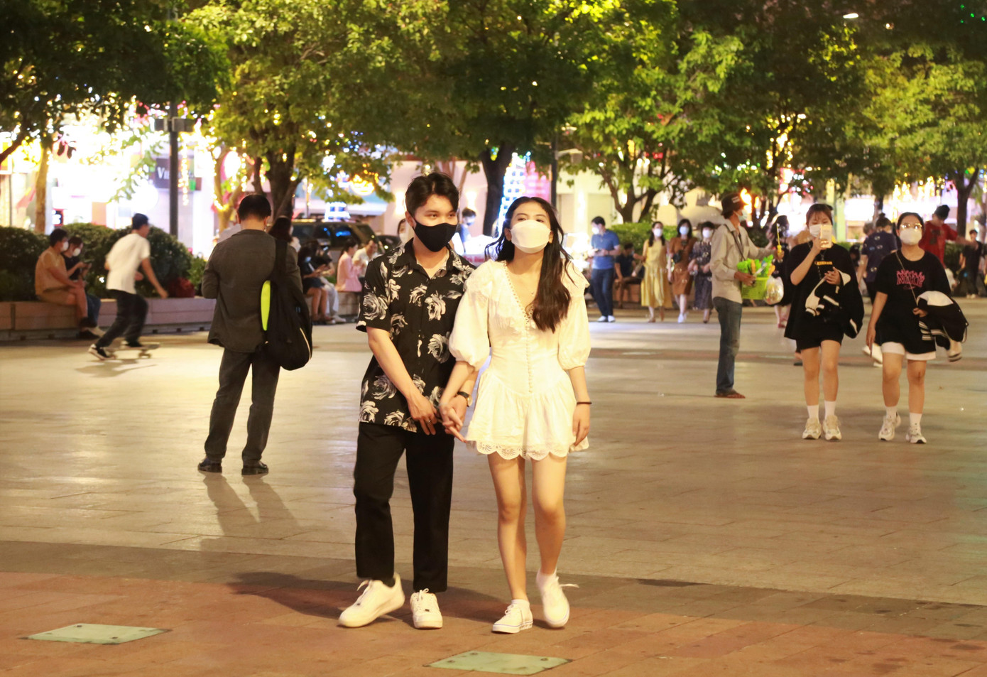 | Chiều muộn, anh Huy Hoàng (ngụ Đồng Nai) cùng bạn gái ra phố đi bộ Nguyễn Huệ thư giãn. "Mình làm trong ngành dịch vụ nên cũng không có nhiều thời gian nghỉ. Hôm nay tranh thủ cuối tuần nên dẫn bạn đi chơi cho có không khí", Hoàng nói. |