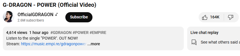 Số người mong chờ G-Dragon nhiều tới mức có thể thấy ở lượt truy cập xem MV POWER. Khi sau 1 tiếng, số lượt xem bị "đóng băng" chưa qua nổi 5.000, trong khi lượt thích đã vượt 160K. POWER ra mắt ở hạng 2 bảng xếp hạng Melon, hạng 2 Genie và hạng 1 Bugs, thành tích cực tốt, chứng minh danh xưng "ông hoàng K-Pop" của G-Dragon vẫn chưa phải dĩ vãng.