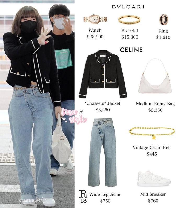 Khi ra sân bay lên đường sang Pháp, Lisa cũng mặc toàn bộ trang phục của CELINE và cô còn đem theo tới 6 chiếc vali to cho một lịch trình dài tại Pháp.