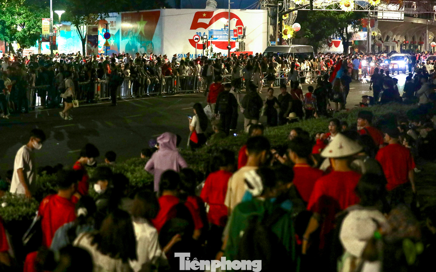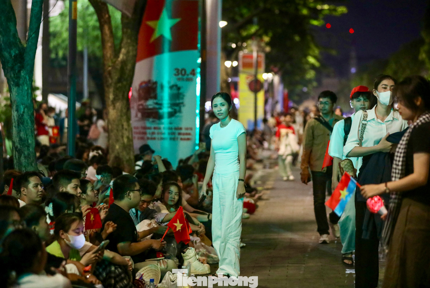 | 0 giờ ngày 27/4, tại khu vực bến Bạch Đằng (quận 1), hàng trăm người đã tập hợp, tranh thủ lựa chọn những vị trí đẹp nhất để đến sáng có thể ngắm nhìn những đội hình diễu binh đi ngang qua. |