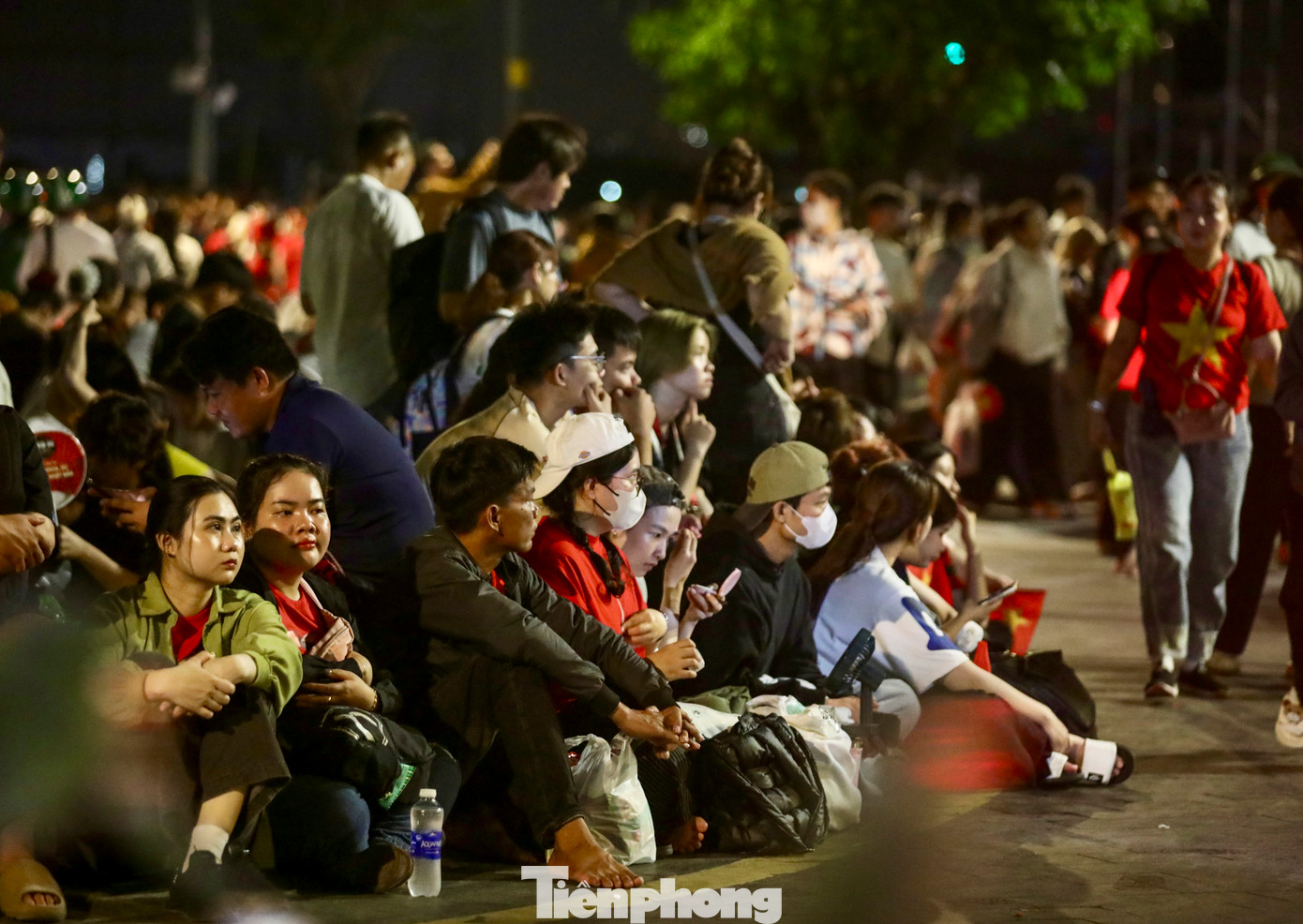 | Nhiều người đã quyết định trải bạt nằm trên vỉa hè ở phố đi bộ Nguyễn Huệ chờ được trải nghiệm những khoảnh khắc lịch sử. |
