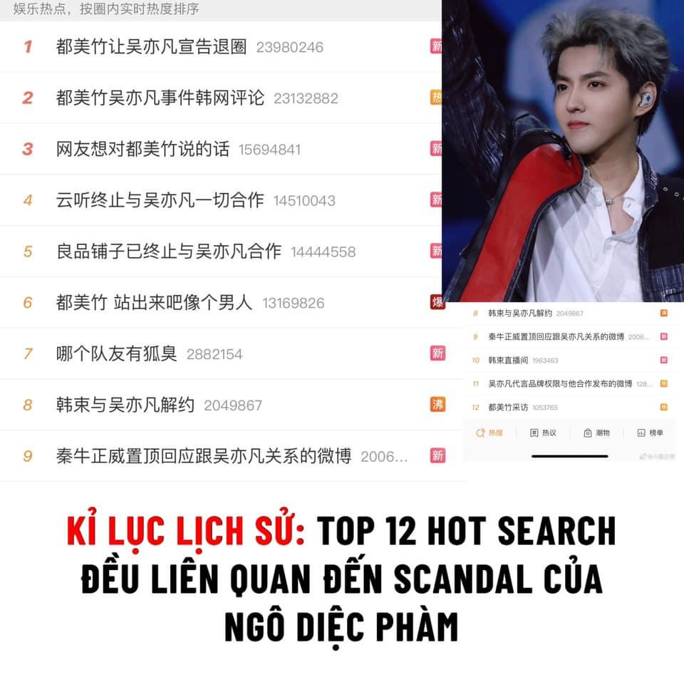 Tối 18/7, rạng sáng 19/7, 12 hot search của Weibo đều là những thông tin liên quan đến scandal này: