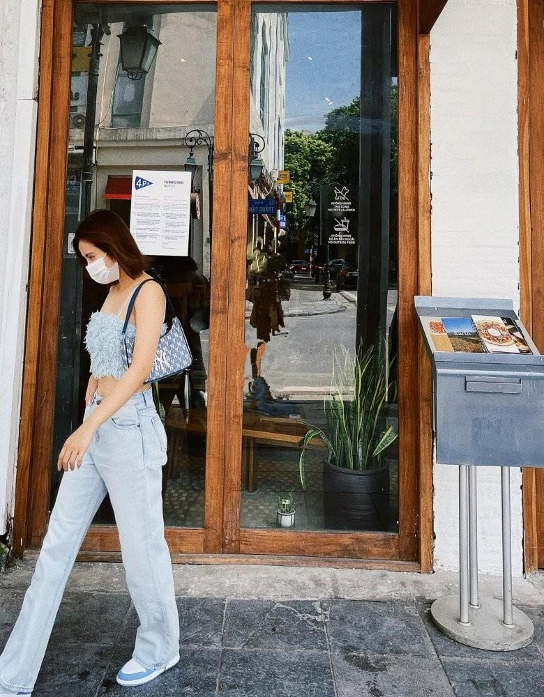 Huyền Lizzie có nhiều mẫu sneaker với đủ các màu sắc để kết hợp với nhiều set đồ khác nhau. Cô cũng thích mặc áo crop-top kèm quần jeans để khoe được vòng eo bé xíu, kết quả của quá trình tập thể thao miệt mài.