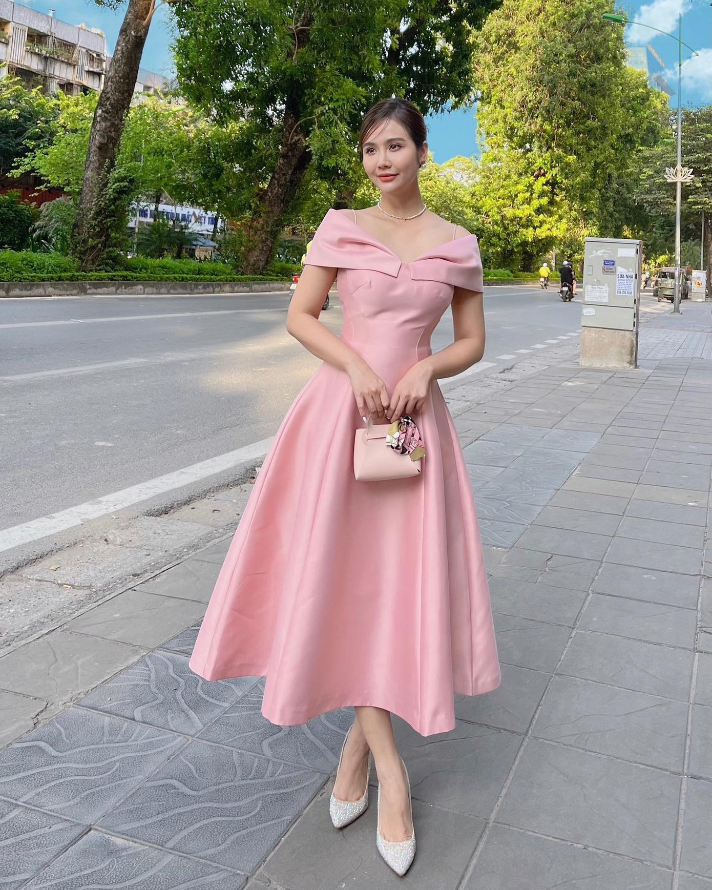 Ở ngoài đời, Huyền Lizzie cũng ưa chuộng những bộ váy điệu đà, nữ tính khi đi dự sự kiện. Tất nhiên cô không quên kèm theo một đôi giày cao gót lấp lánh để hoàn thiện thêm outfit của mình.