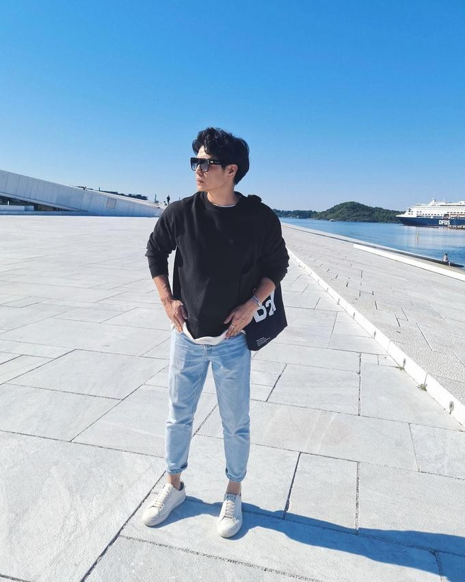 | Huy Trần đăng ảnh "check-in" tại thủ đô Oslo, khéo tiết lộ người chụp ảnh bằng icon trái tim. |