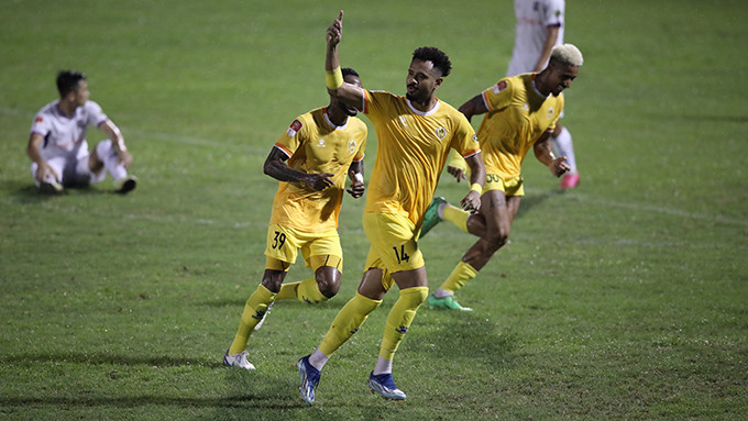 Bước sang hiệp 2, hai đội ăn miếng trả miếng quyết liệt. Khi các học trò của HLV Lê Huỳnh Đức còn đang bế tắc trong việc ghi bàn, thì đội chủ nhà Quảng Nam đã bất ngờ vượt lên dẫn trước. Phút 55, tiền đạo Yago Ramos nhận bóng từ trung vệ Eze rồi tung ra cú cứa lòng hiểm hóc, thủ môn Trần Minh Toàn đã bay người hết cỡ nhưng không thể chạm được tay vào bóng.