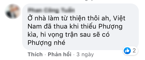 Tuy nhiên bên cạnh đó, vẫn có nhiều dân mạng lên tiếng bênh vực Công Phượng, cho rằng lý do nam cầu thủ không thể ra tham gia thi đấu cùng các đồng đội hoàn toàn có thể thông cảm được, không tới mức phải hứng chịu chỉ trích như vậy.