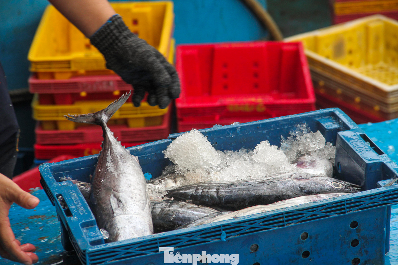 | Theo ngư dân, hiện tại, cá ngừ sọc dưa được thương lái thu mua với giá cao, dao động từ 31 – 32 ngàn đồng/kg, loại đẹp. (Ảnh: Trương Định) |