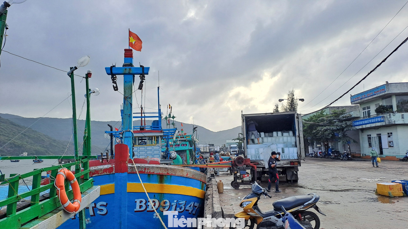 | Thời điểm này, một số tàu cá của ngư dân Bình Định đang chuẩn bị đá lạnh để ra khơi đánh bắt chuyến biển mới. (Ảnh: Trương Định) |