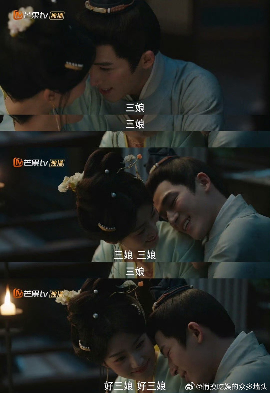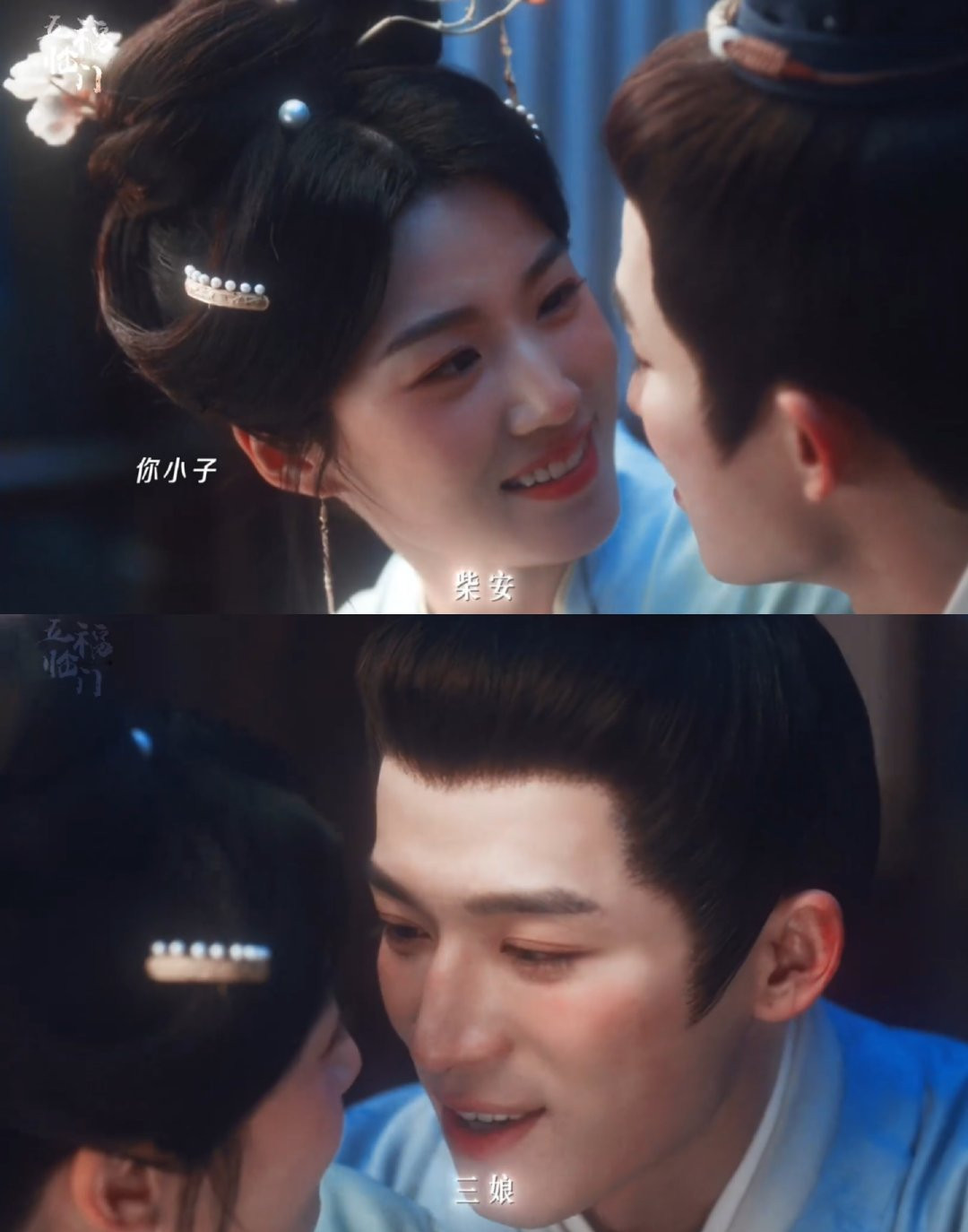Đó là vài phút ở tập 21 của Ngũ Phúc Lâm Môn. Sài An (Vương Tinh Việt) đi thương lượng giá trà giúp mẹ vợ, uống say. Chàng về Phan Lâu nhìn thấy thê tử, liền "xà nẹo" Lệ Khang Ninh (Lư Dục Hiểu). Rượu vào lời ra, Sài An vô tình khai ra chuyện mình đùng đùng xin đi biển buôn bán cũng chỉ là mưu mẹo để khiến Khang Ninh mủi lòng, quay lại cưới mình. Bị "vịu ơ" nói trúng tim đen, Sài An liền dụi đầu vào vai nàng làm nũng, liên tục gọi "tam nương"
