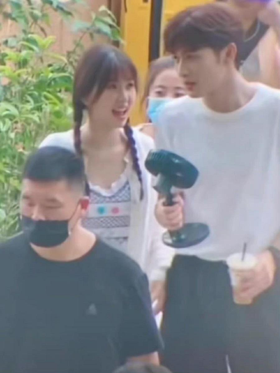 | Ngu Thư Hân và Trương Bân Bân trên phim trường. |