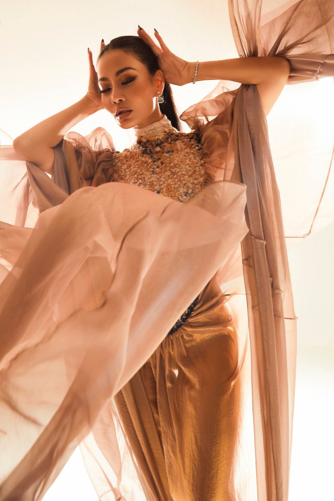 Trong loạt ảnh, chủ nhân hit Đường cong thể hiện phong thái tự tin và dáng vẻ tràn đầy năng lượng. Những khoảnh khắc Thu Minh đứng cạnh chiếc mic với gương mặt đầy tận hưởng như thể hiện sự nhiệt huyết dành cho âm nhạc.