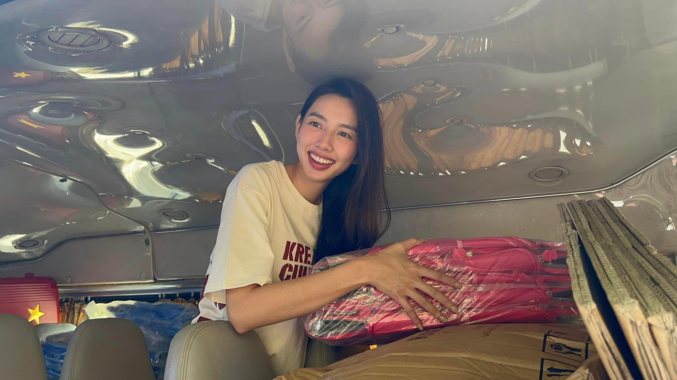 | Thùy Tiên chẳng nề hà việc gì khi đi làm từ thiện |