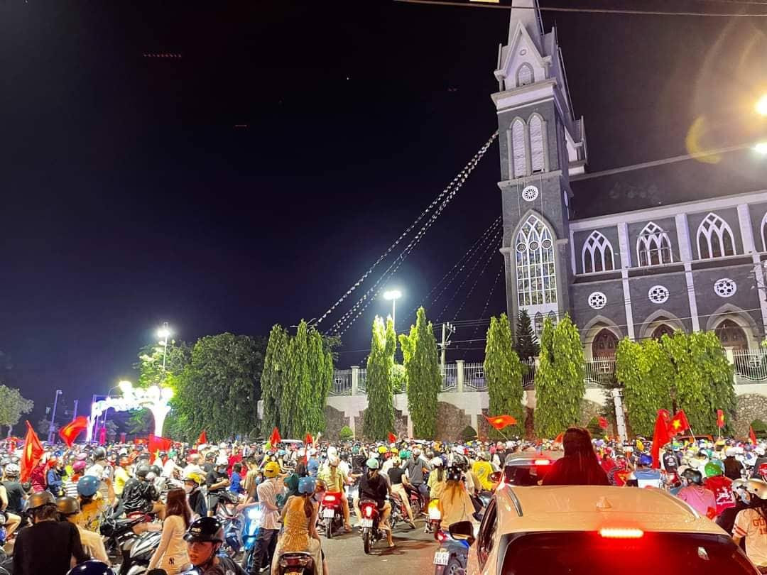 Người dân thành phố Nam Định, nơi được cả Đông Nam Á thán phục vì tinh thần cổ vũ nồng nhiệt cho suốt giải đấu của bảng B, đều đã đổ xuống đường, biến đường phố thành rừng cờ đỏ.