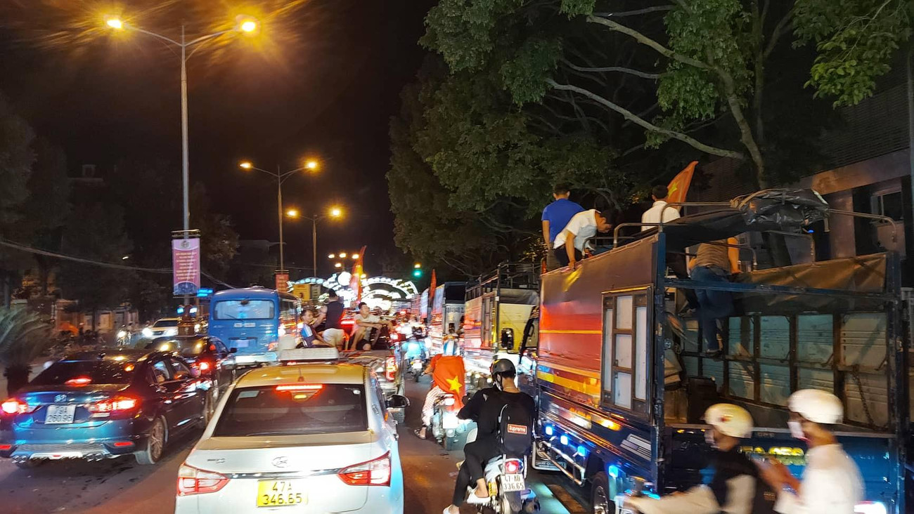Người dân Đắk Lắk - quê hương cầu thủ Phan Tuấn Tài đổ về quảng trường 10/3 và trung tâm ngã 6, TP.Buôn Ma Thuột ăn mừng chiến thắng của tuyển Việt Nam.