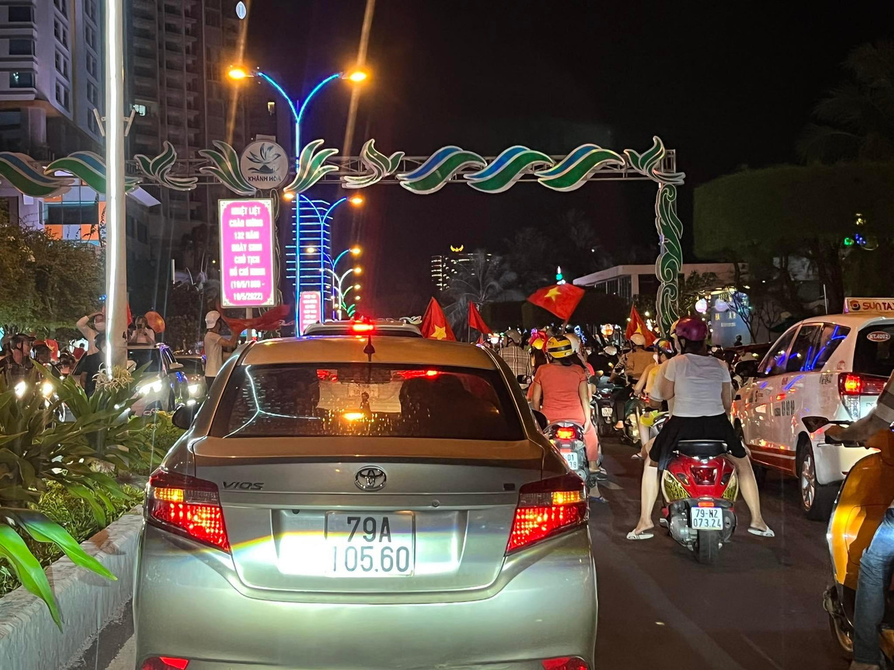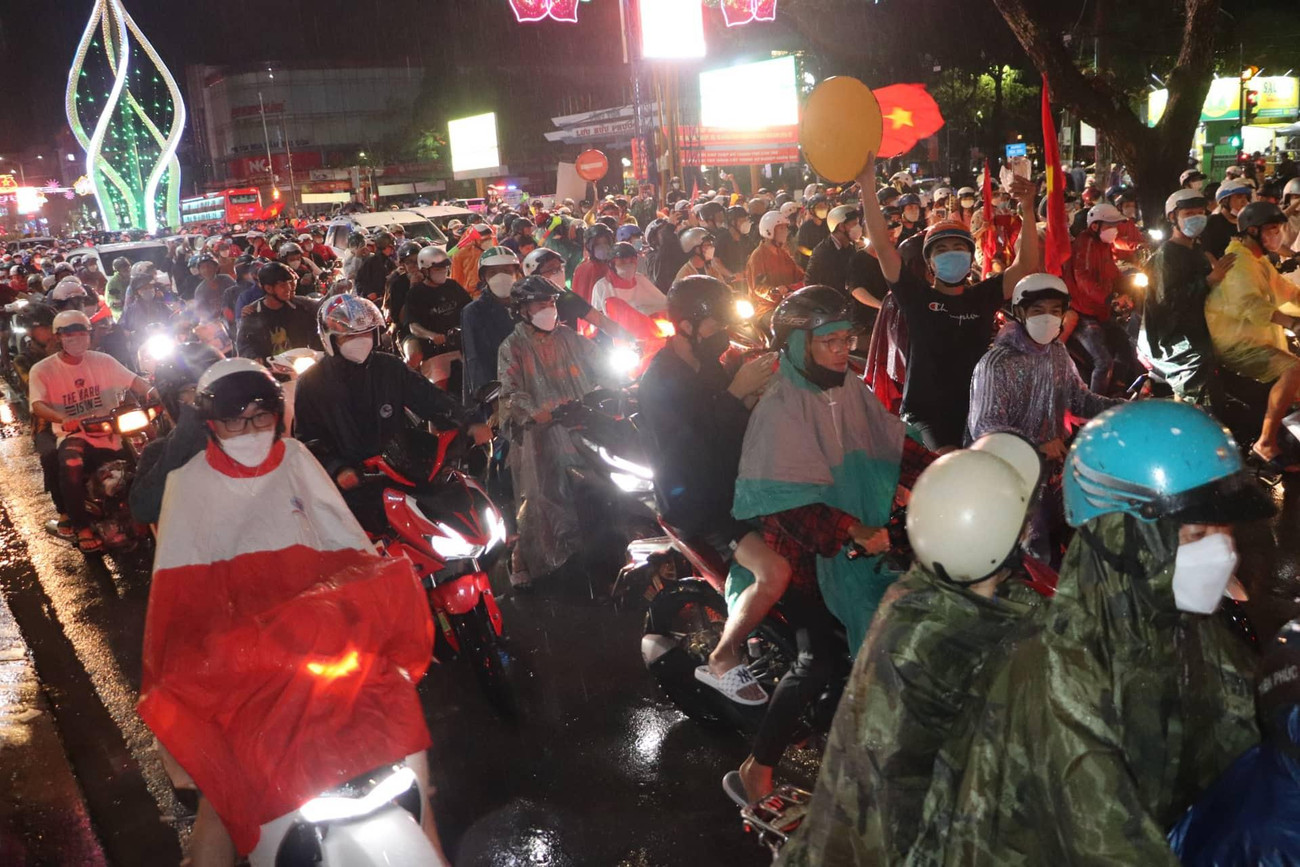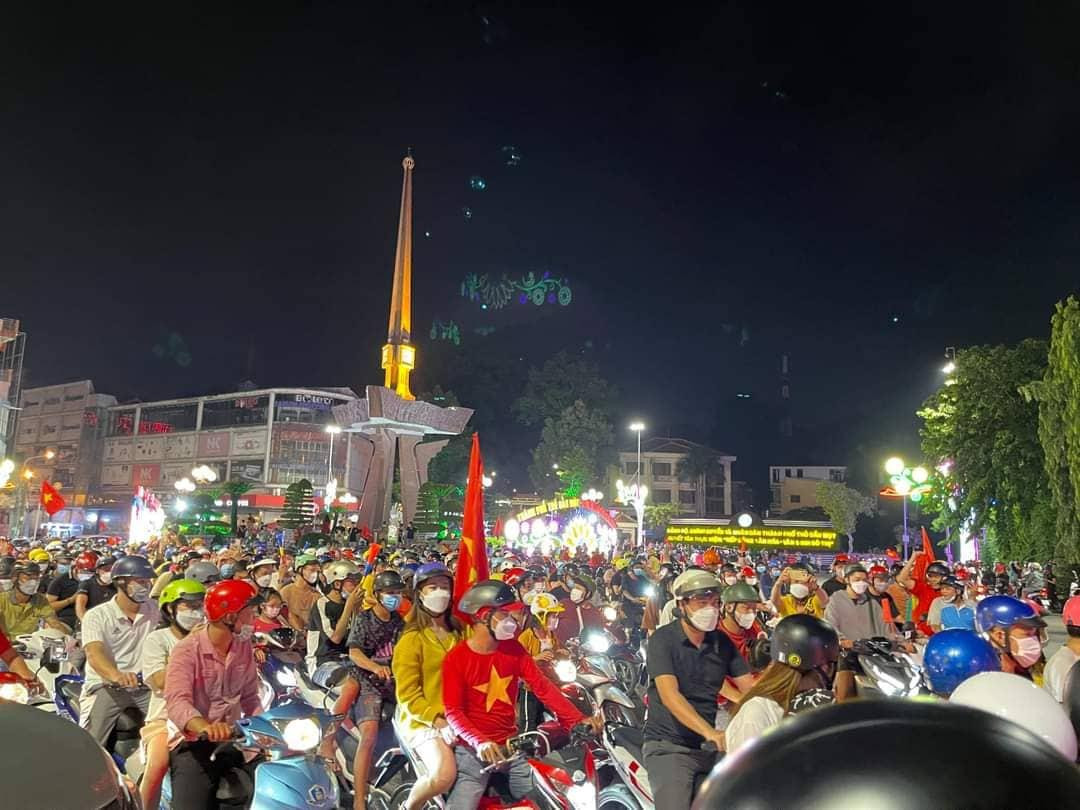 Tại thành phố Đà Nẵng, các tuyến phố chính như: Trần Phú, Nguyễn Văn Linh, Võ Văn Kiệt, Bạch Đằng... kẹt cứng dòng người xuống đường ăn mừng. Dòng người cùng cờ Tổ quốc, kèn... hét vang "Việt Nam Vô địch".