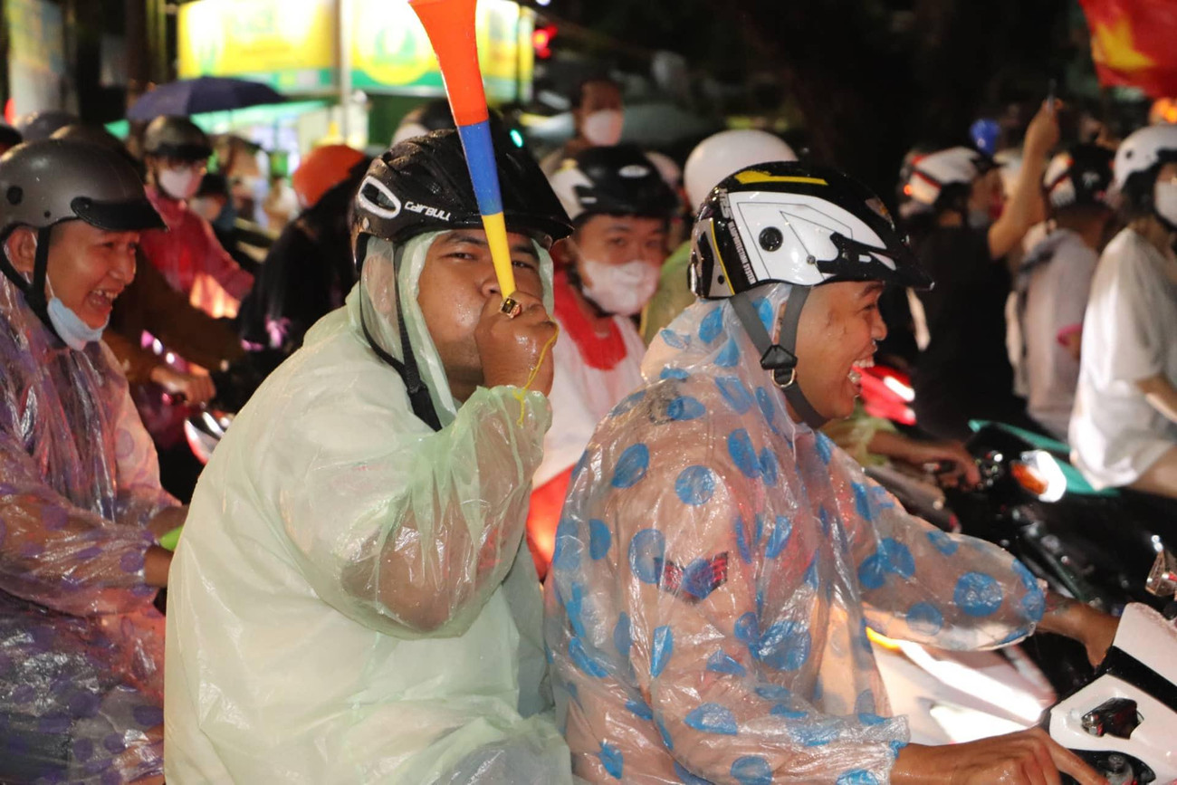 Tại thành phố Cần Thơ, mặc dù trời mưa nhưng đông đảo người dân thành phố vẫn đổ ra đường ăn mừng chiến thắng, chia sẻ niềm vui với đội tuyển bóng đá U23 Việt Nam đã giành huy chương vàng ở SEA Games 31.