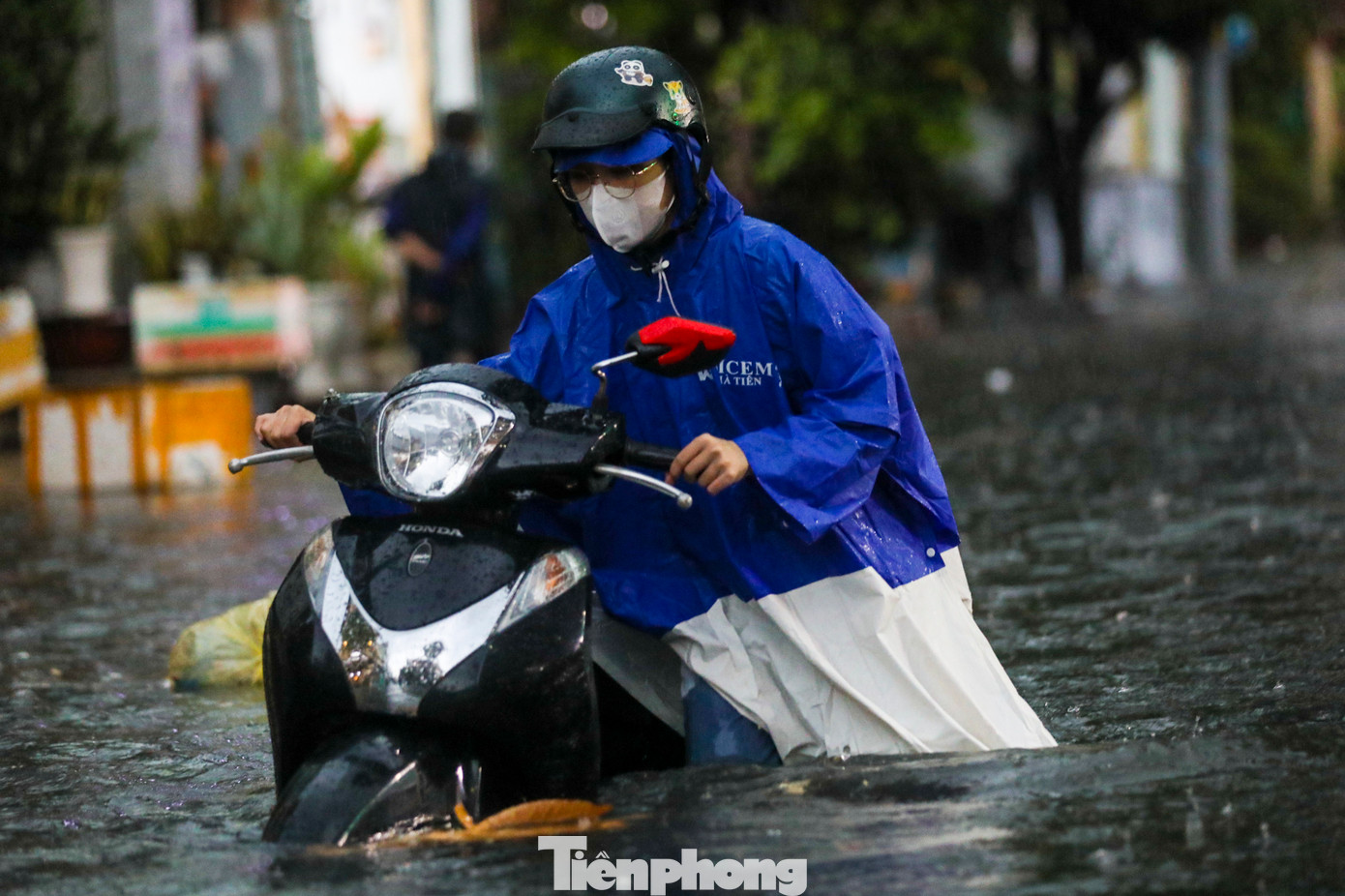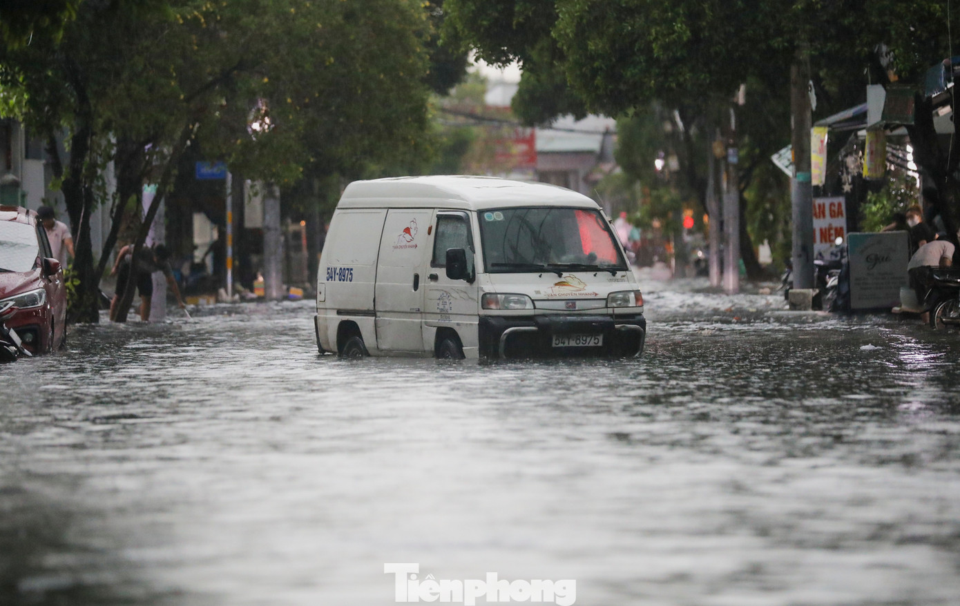 | Mưa càng lúc càng lớn khiến đoạn đường bị ngập nặng và không có dấu hiệu nước rút kịp. |