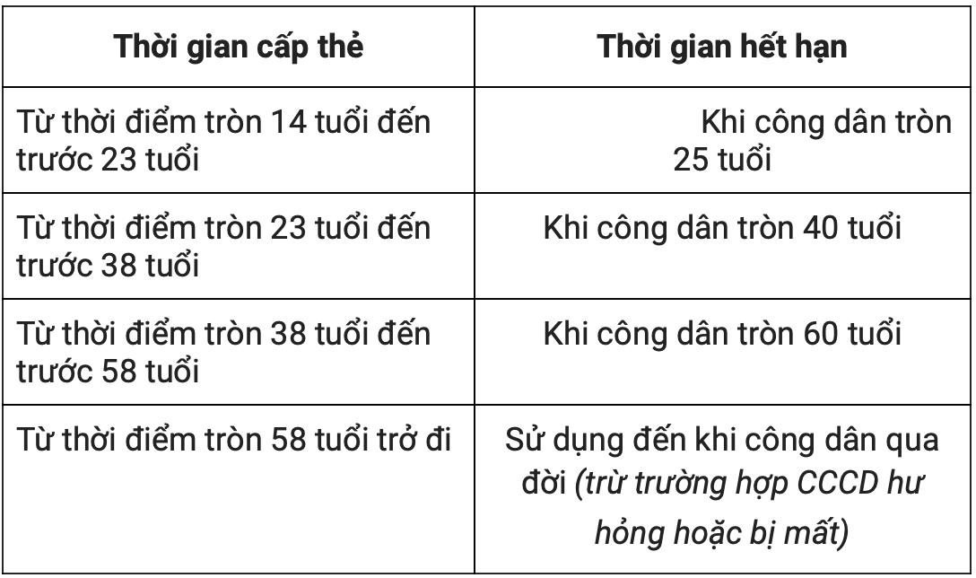 Tuy nhiên, nếu thẻ CCCD được cấp, đổi, cấp lại trong thời hạn 2 năm trước tuổi quy định thì vẫn có giá trị sử dụng đến tuổi đổi thẻ tiếp theo. Cụ thể về thời hạn của thẻ CCCD như sau: