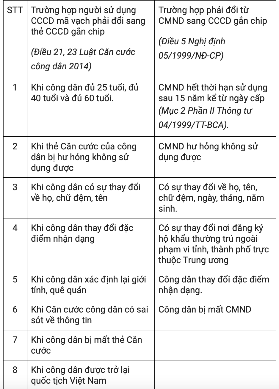 Trường hợp bắt buộc đổi từ CMND/CCCD mã vạch sang CCCD gắn chip