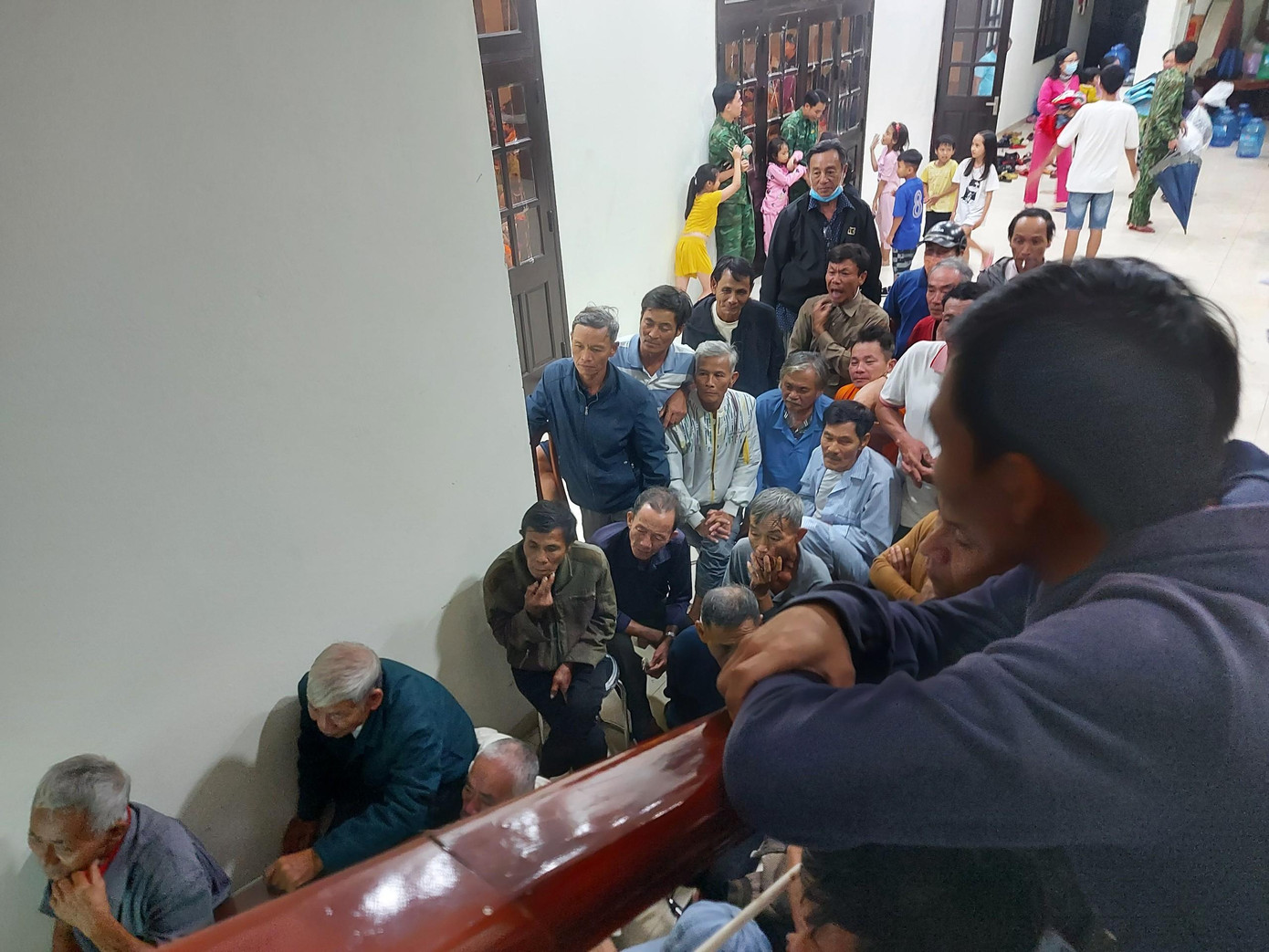 Sáng cùng ngày ông Thái cùng mẹ già và 2 cháu được xe của lực lượng chức năng đưa lên đây trú bão. Ông nói, vào được nơi kiên cố an toàn để tránh trú như thế này cũng phần nào yên tâm, nhất là với những người già, trẻ nhỏ.