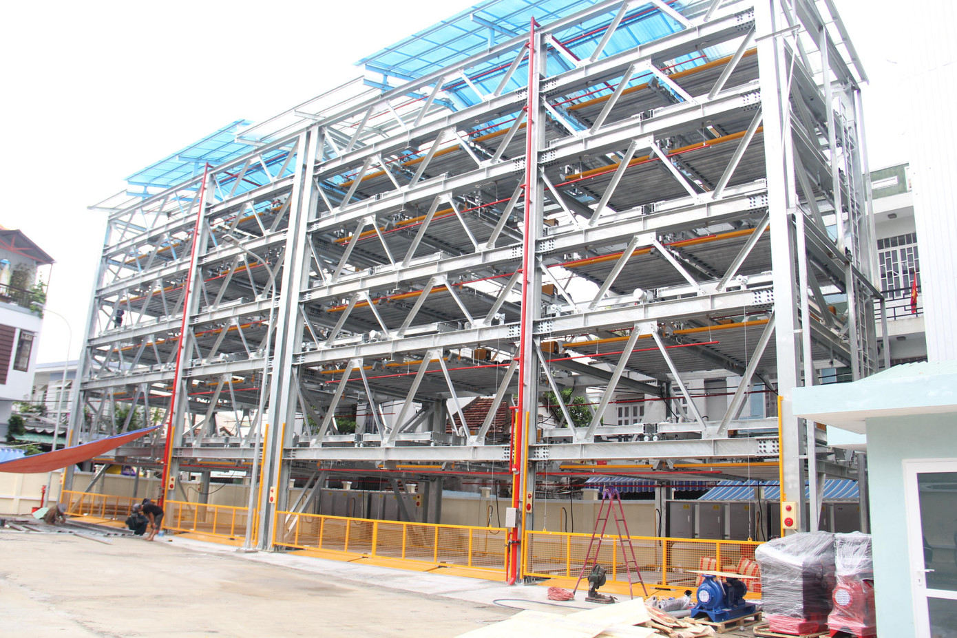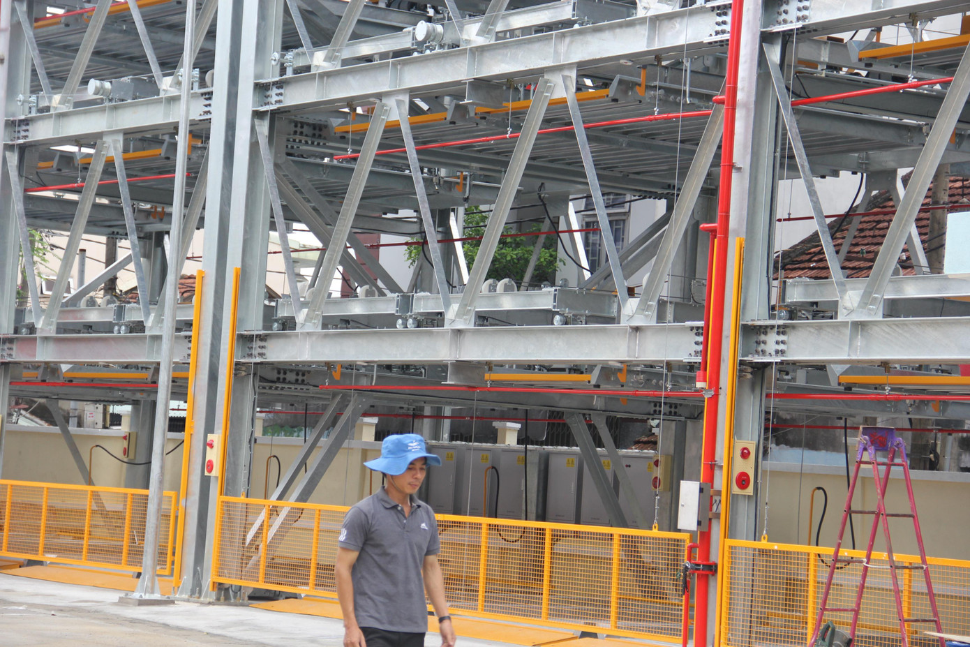 Đây là bãi đỗ xe tự động đầu tiên của Đà Nẵng, được thiết kế dạng block thép cao 6 tầng, với quy mô 50 chỗ đỗ xe ô tô cho loại xe 4 – 7 chỗ, vận hành theo công nghệ Nhật Bản.. Ảnh: Thanh Trần.