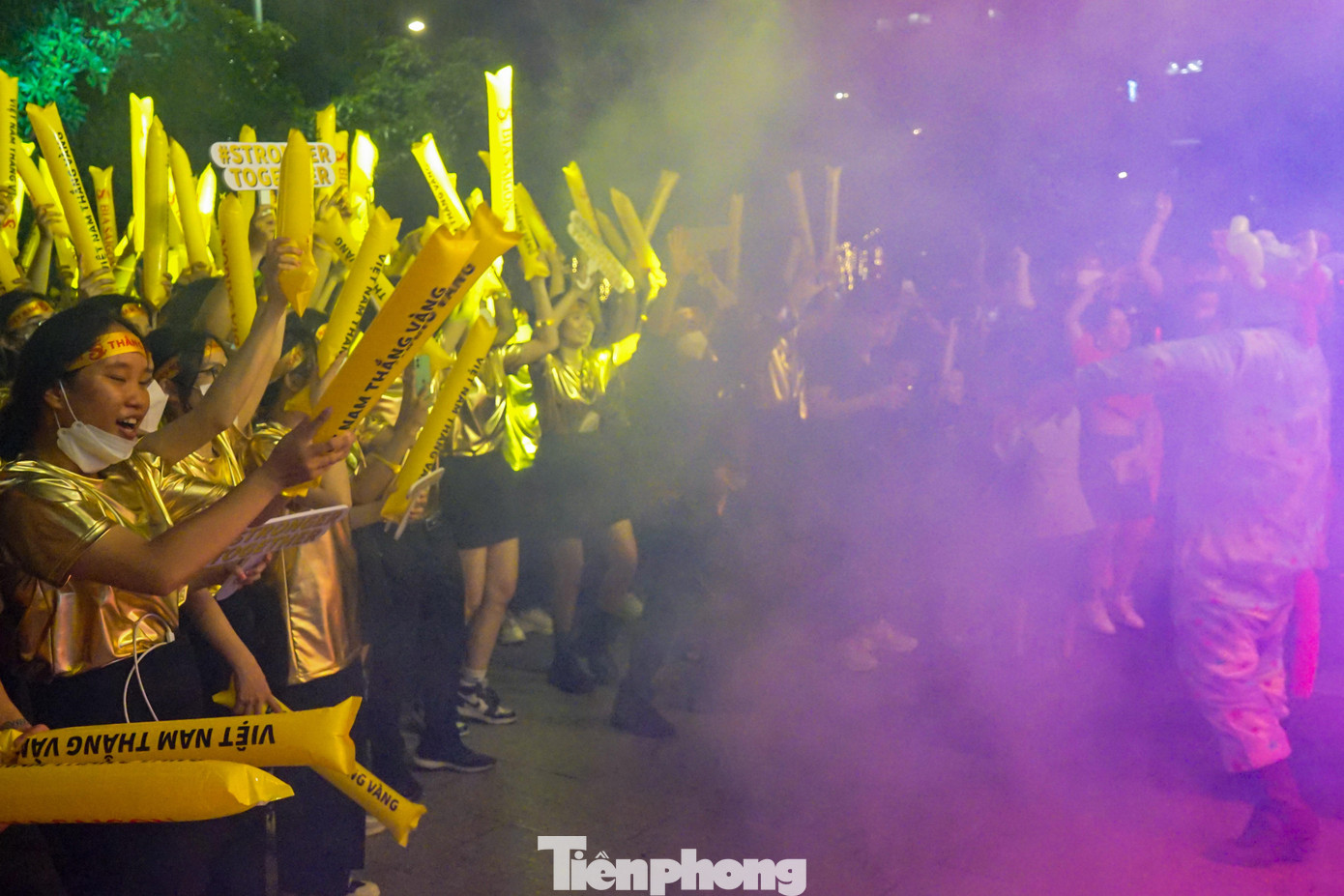 | Bước sang hiệp 2, lần lượt các cầu thu như Tiến Linh, Hùng Dũng, Văn Đô ghi bàn mở tỷ số cho đội tuyển Việt Nam, nhiều cổ động viên tại phố đi bộ vui mừng trong không khí náo nhiệt. |