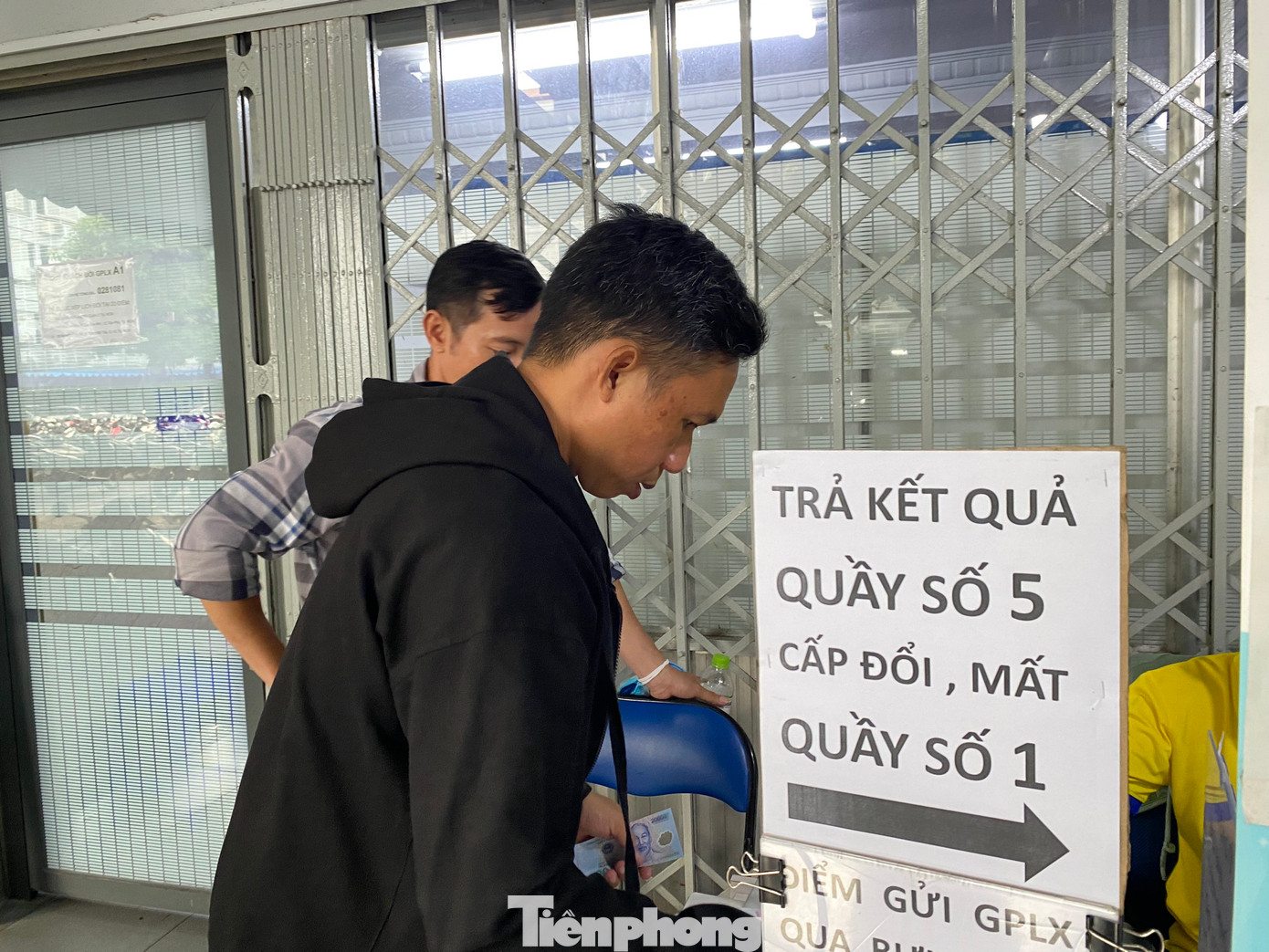 | Người dân đợi đến lượt nộp hồ sơ làm thủ tục cấp đổi GPLX. |