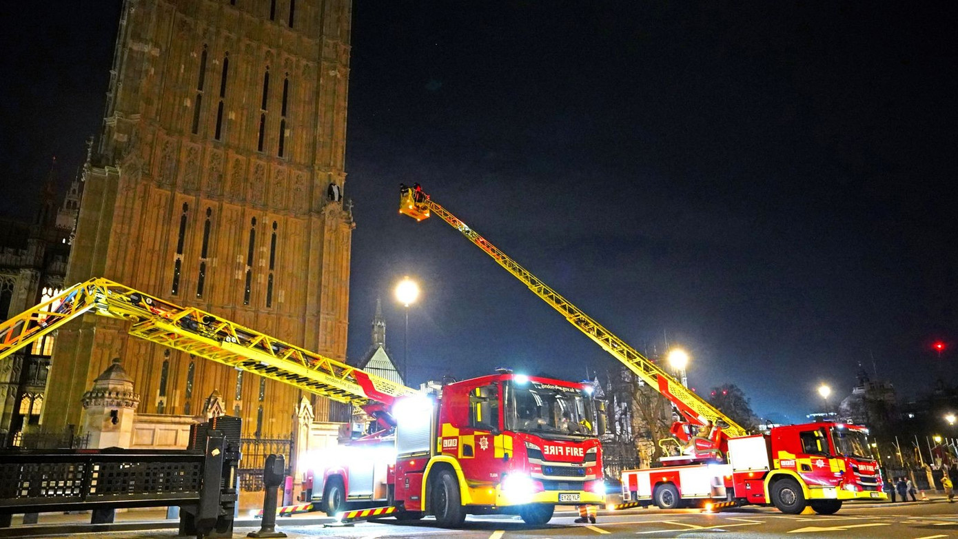 | Người đàn ông cầm quốc kỳ Palestine cố thủ trên tháp Big Ben. (Ảnh: PA) |