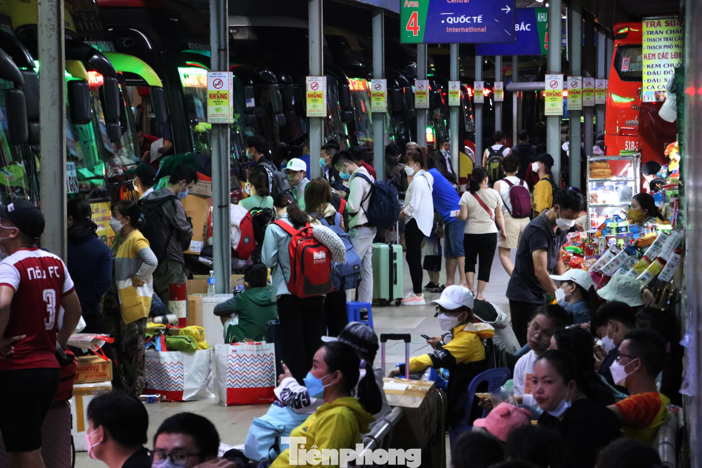 | Ghi nhận của phóng viên tại bến xe Miền Đông, từ khoảng 18h hôm nay, rất đông người dân đã tập trung về đây để mua vé xe khách hồi hương. |