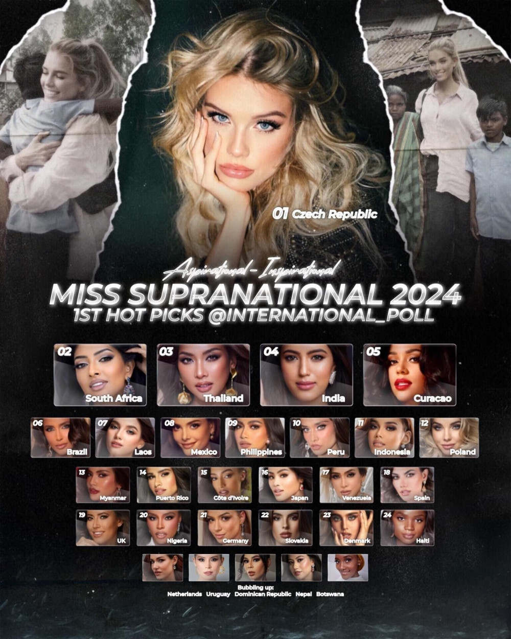 Người đẹp đến từ Cộng hoà Séc Justýna Zedníková hiện đang được đánh giá cao nhất. Cô được đương kim Miss World 2024 Krystyna Pyszková (cũng là Miss Czech Republic 2022) trao lại vương miện. Nếu theo thường lệ, Justýna sẽ được cử tới Miss World 2025, tuy nhiên cô bất ngờ được cử tới Miss Supranational 2024.