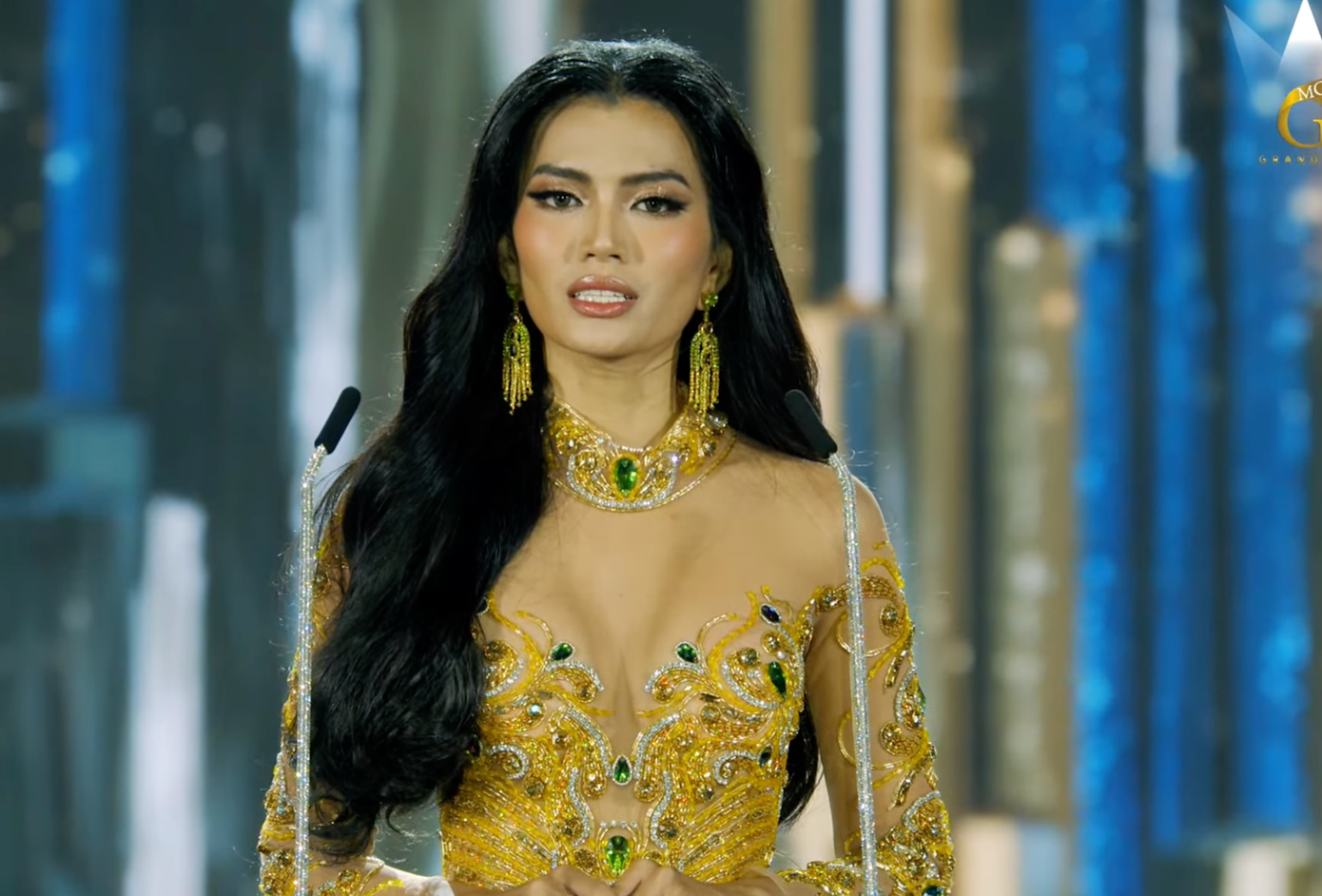 Ông Nawat - Chủ tịch cuộc thi Miss Grand International cũng thực hiện chuyển giao vương miện - một nghi thức quen thuộc của cuộc thi. Theo đó, ban tổ chức sẽ trao cho cựu hoa hậu chiếc vương miện phiên bản để giữ làm kỷ niệm.