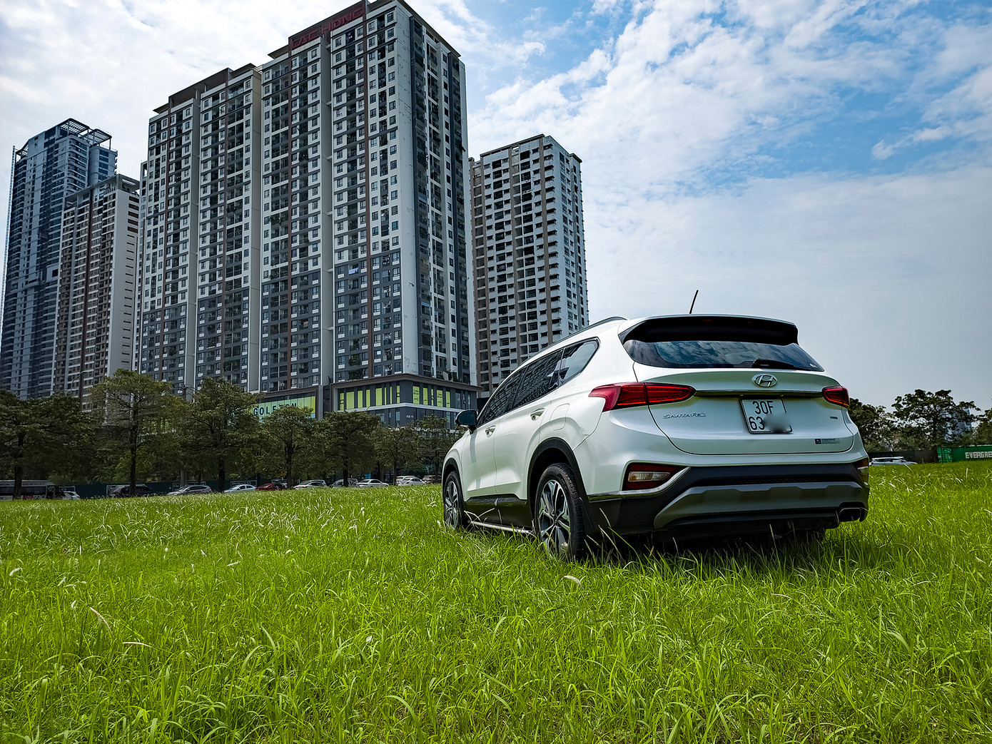 Đánh giá tổng thể, Santa Fe sau 4 năm sử dụng không bị xuống sắc ở ngoại hình, nước sơn vẫn bóng và mịn, không xuất hiện các vết rạn hay tróc. Vì là xe màu trắng cho nên việc màu sắc không được tinh khiết như ban đầu. Anh Duy cũng tính đến việc sẽ đi spa, hiệu chỉnh màu sắc sơn cho như mới.