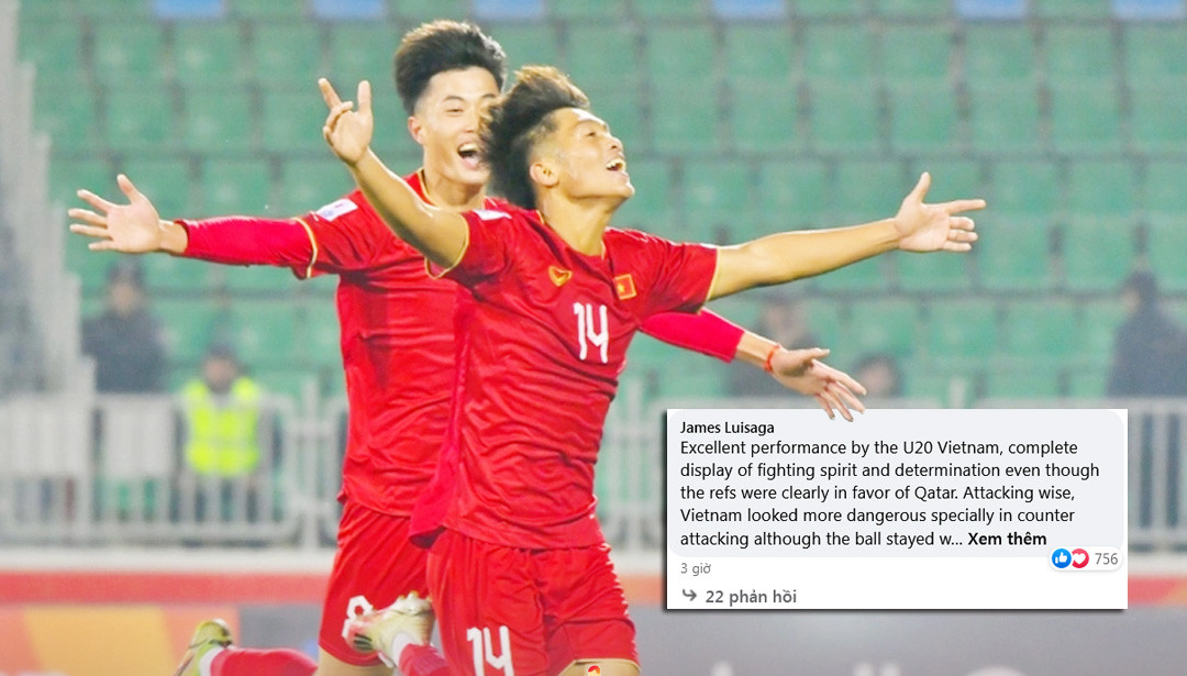 CĐV James Luisaga từ Indonesia bày tỏ cảm xúc: “U20 Việt Nam đã thi đấu xuất sắc, thể hiện trọn vẹn tinh thần chiến đấu và quyết tâm cao dù trọng tài nghiêng về Qatar rõ ràng. Việt Nam tỏ ra nguy hiểm hơn, đặc biệt ở những pha phản công. Nhìn chung, đây là màn trình diễn hoàn hảo. Xin chúc mừng Việt Nam. Các bạn là bất ngờ lớn nhất và là chú ngựa ô của giải đấu này”.