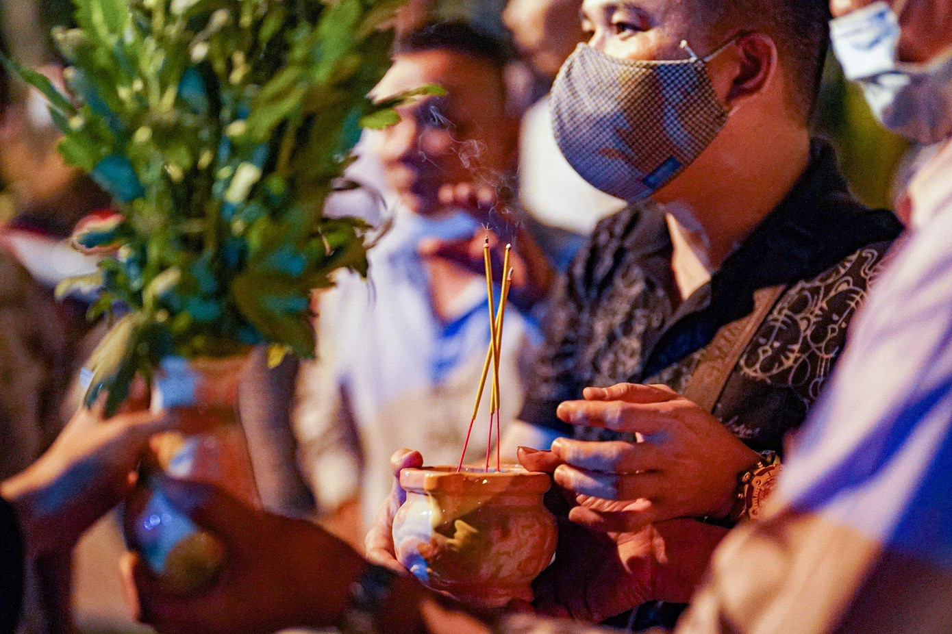 | Bạn của nhóm nạn nhân trong vụ cháy quán karaoke tối qua chờ đợi với ánh mắt bàng hoàng. Ảnh: Phạm Nguyễn. |