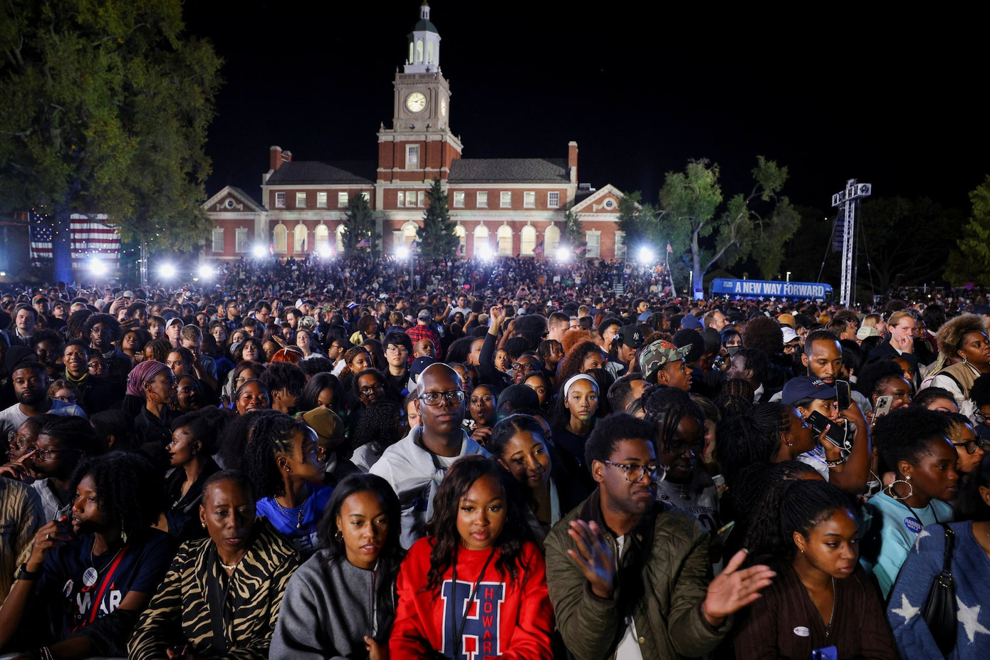 | Cử tri đảng Dân chủ tham dự bữa tiệc theo dõi kết quả bầu cử của bà Kamala Harris tại Đại học Howard (Washington). (Ảnh: Reuters) |