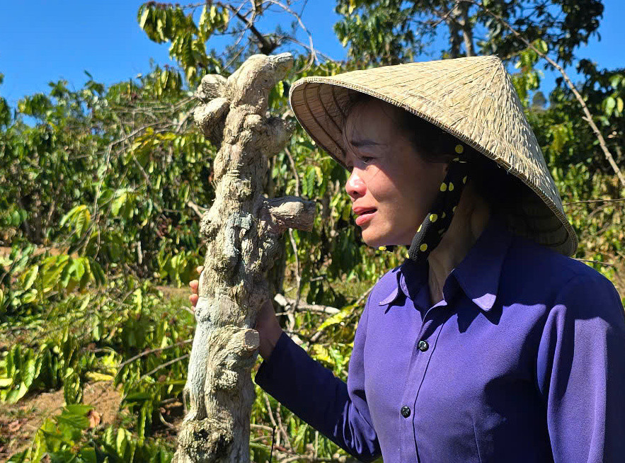 “Ngày 12/2 tôi ra phát hiện 35 cây cà phê, 4 cây sầu riêng, 200 cây tiêu bị phá. Sau đó tôi báo công an xuống điều tra. Tuy nhiên, đến tối 13/2 vườn cà phê của tôi lại bị phá tiếp, số lượng nhiều quá giờ không muốn đếm nữa”, chị Thanh nói.