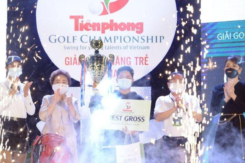 | Anh Minh, nhà vô địch, là golfer trẻ nhất Tiền Phong Golf Championship 2021. |