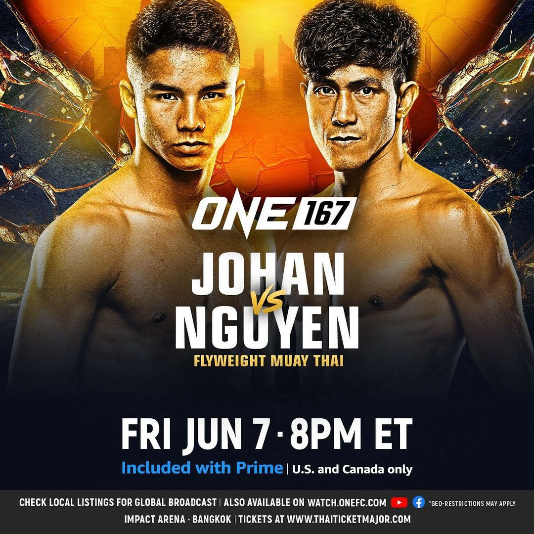 Sự kiện ONE 167 được dẫn đầu bởi trận tranh đai Muay Thái hạng Featherweight giữa đương kim vô địch Tawanchai với Jo Nattawut. Nhà vô địch Rodtang Jitmuangnon cũng sẽ đối đầu với Denis Puric, người từng chiến thắng Duy Nhất hồi tháng 12/2023, trong một trận Kickboxing.