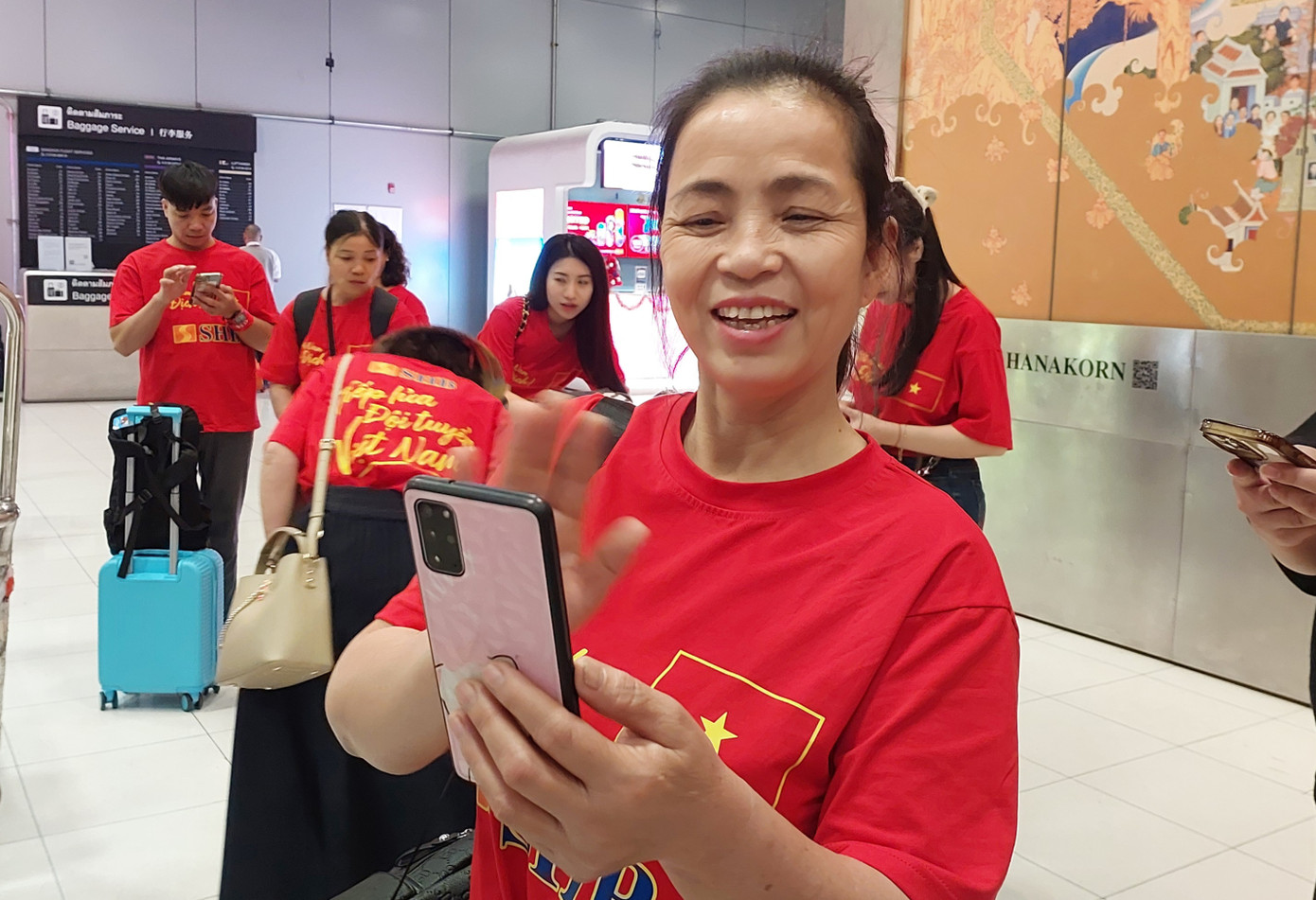 Đi cùng chuyến bay tới Bangkok, cô Lê Thị Lan, mẹ đội trưởng Đỗ Duy Mạnh hào hứng chia sẻ với phóng viên báo Tiền Phong: "Gia đình cô có chuẩn bị vài chục mâm cỗ, sẵn sàng đón tiếp bất cứ bà con nào tới xem và cổ vũ đội tuyển tối nay. Vì cô sang Thái Lan nên mọi việc ở nhà giao cho chị gái Mạnh. Cô vừa gọi điện về, thấy nhà báo lại công tác chuẩn bị đã hòm hòm, chỉ chờ buổi chiều bà con tới để bắt đầu".