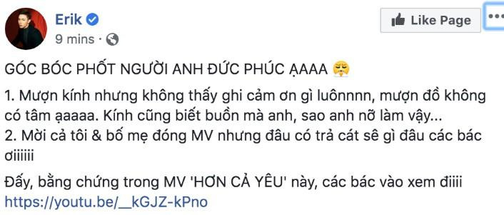 Không chỉ Hòa Mizy, Erik cùng với gia đình cũng góp mặt với vai trò cameo trong MV này. Thế nhưng, gia đình Hoa Dâm Bụt lại một lần nữa chứng tỏ tình chị em "bất ổn" khi Erik đăng bài “bóc phốt” Đức Phúc với lý do: Không được trả tiền cát-xê và cũng không ghi cảm ơn khi được cho mượn quần áo.