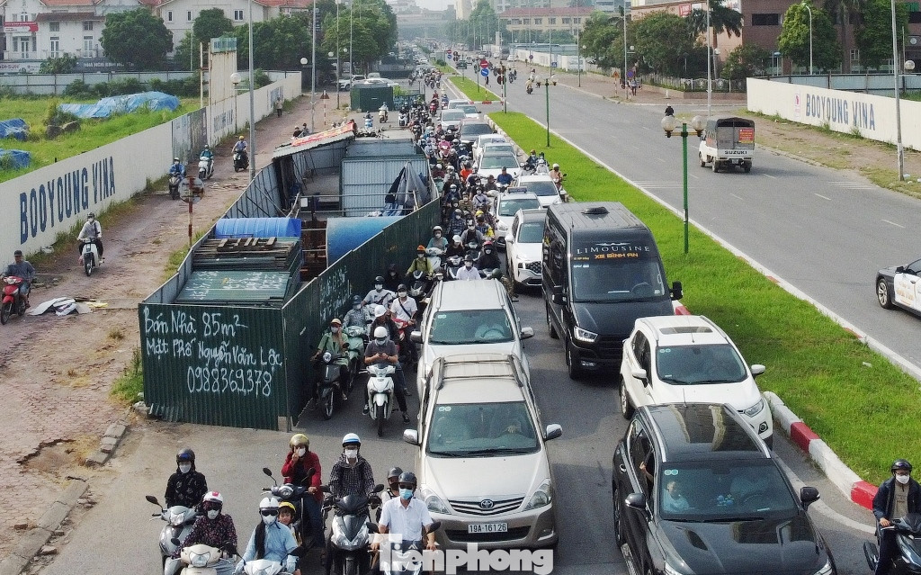 Ghi nhận tại đây trong sáng 26/6, PV Tiền Phong chứng kiến cảnh ùn tắc kéo dài theo chiều Văn Quán đi Trung Văn.
