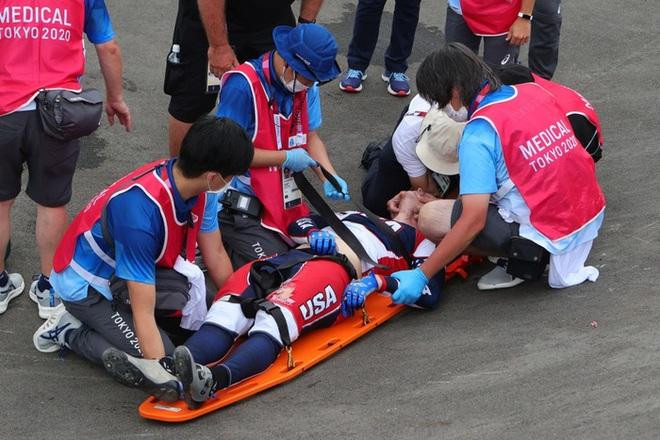 Tay đua người Mỹ đã được các nhân viên y tế chăm sóc, trước khi phải rời đường đua bằng cáng và lên xe cứu thương nhập viện khẩn cấp. Theo USA Today, các bác sĩ chẩn đoán tay đua này bị xuất huyết não.